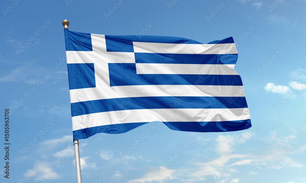 Samolepka Greece national flag waving against blue sky