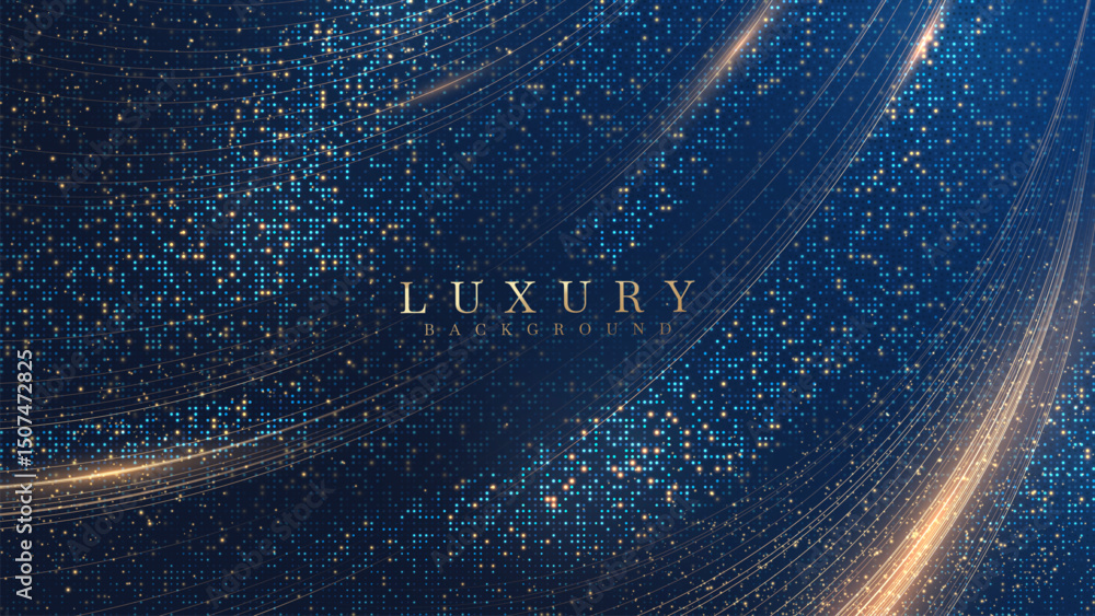 Samolepka Luxury blue background with golden curves on glowing halftone backdrop