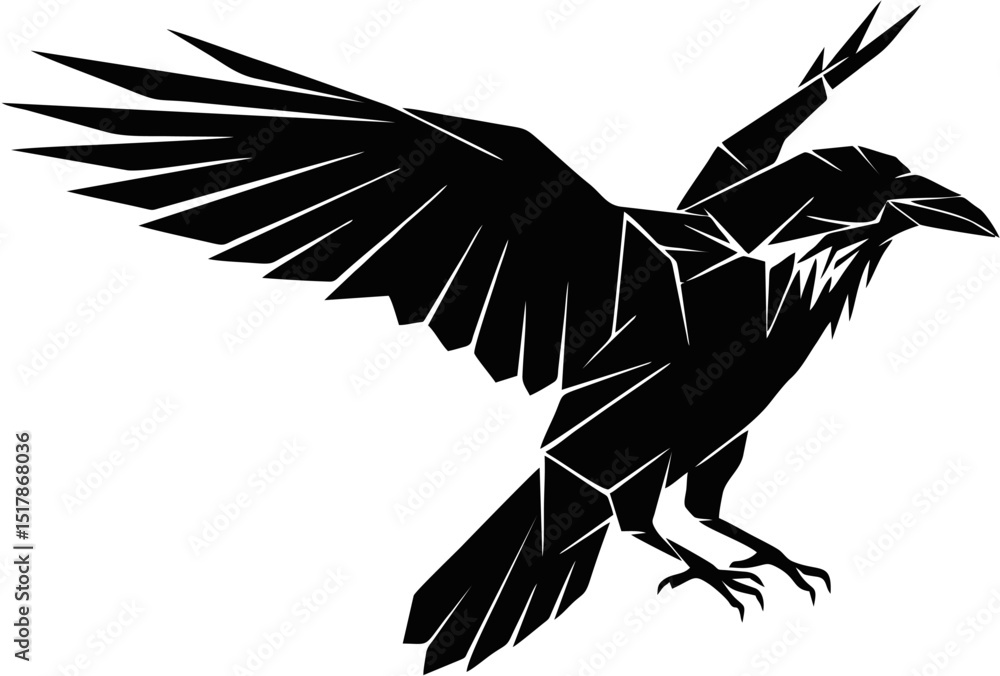 Samolepka Geometric Raven Illustration Black and White Bird Design