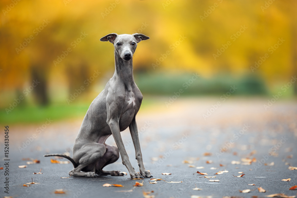 Samolepka cute italian greyhound dog sitting in the park in autumn