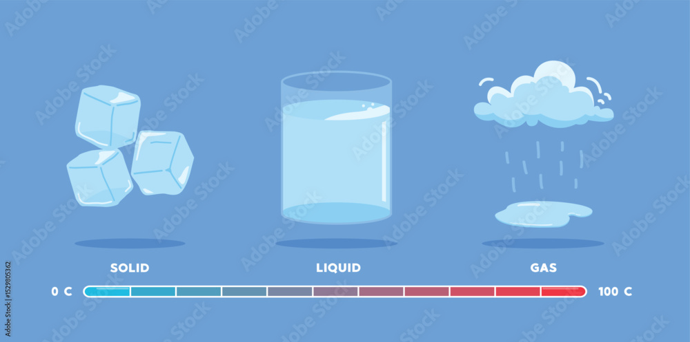 Samolepka science lesson, Changes in the state of matter from solid, liquid and gas due to temperature