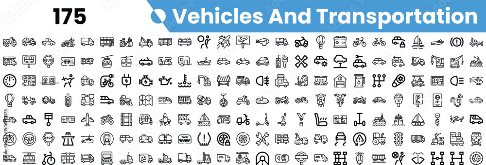 Samolepka A diverse collection of black and white icons representing various vehicles and modes of transportation
