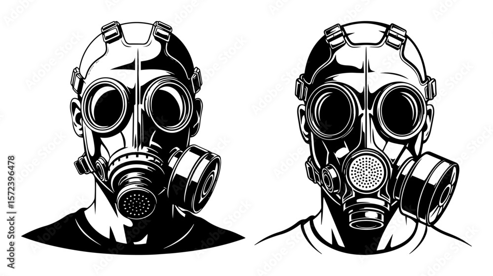 Samolepka man in gas mask respirator post-apocalyptic vector illustration