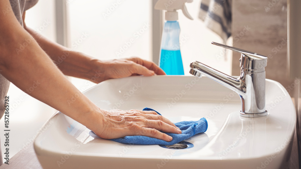 Samolepka Hands of female cleaning lavatory sink