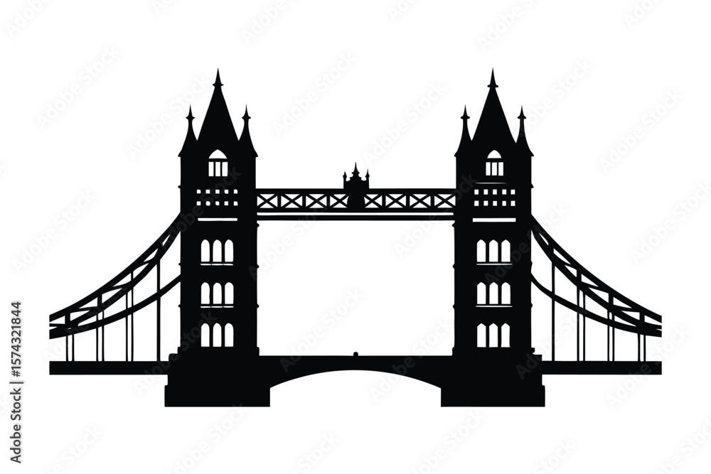 Samolepka A stark black silhouette of Tower Bridge against a pure white background