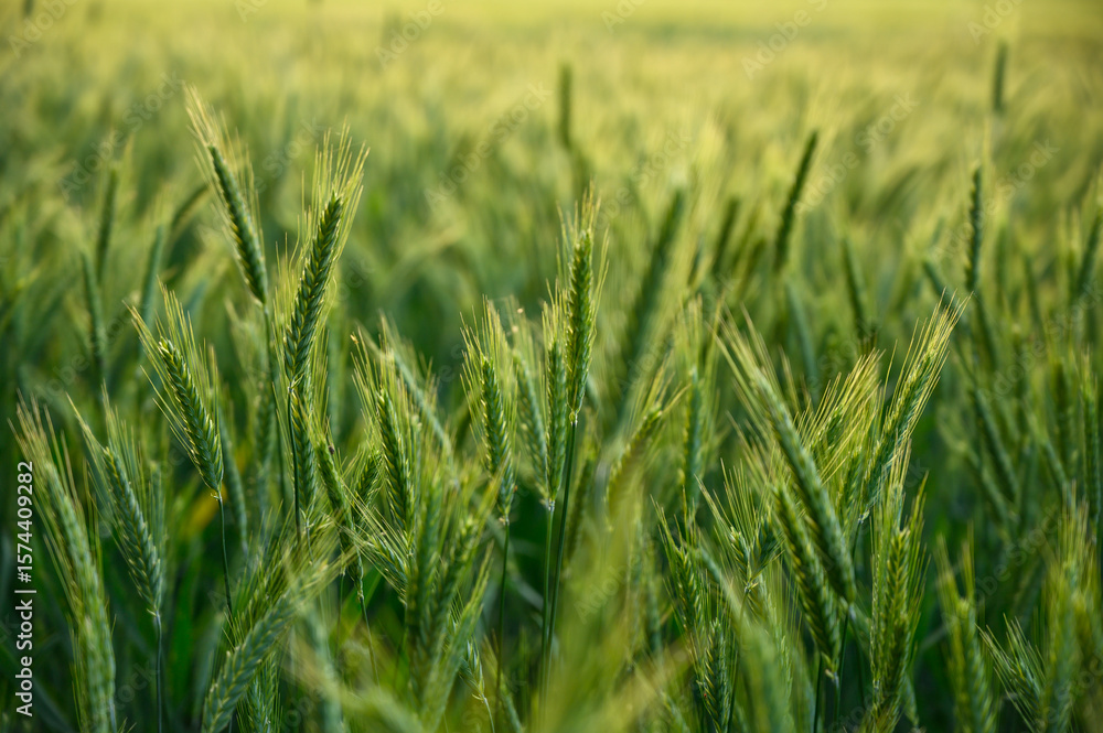 Samolepka Lush green wheat field under natural daylight