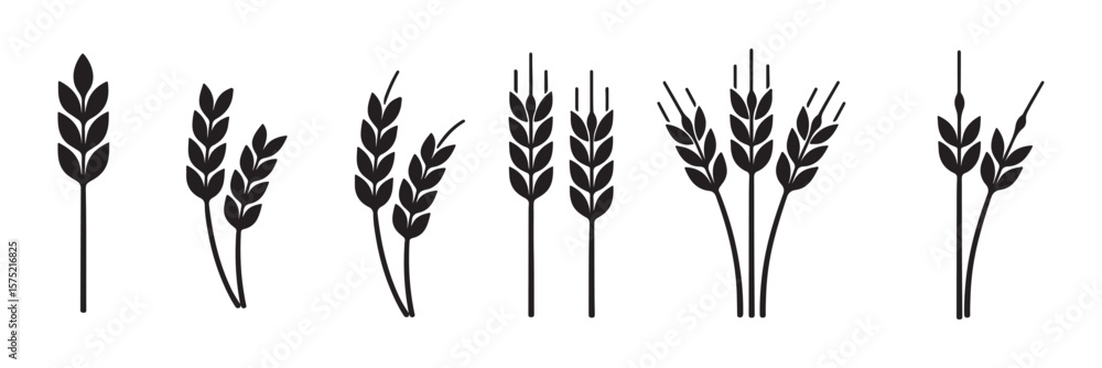 Samolepka wheat icon, Grey Cereals icon set with rice, wheat, corn, oats, Vector farm wheat ears icon, Gluten free icon, Wheat logo