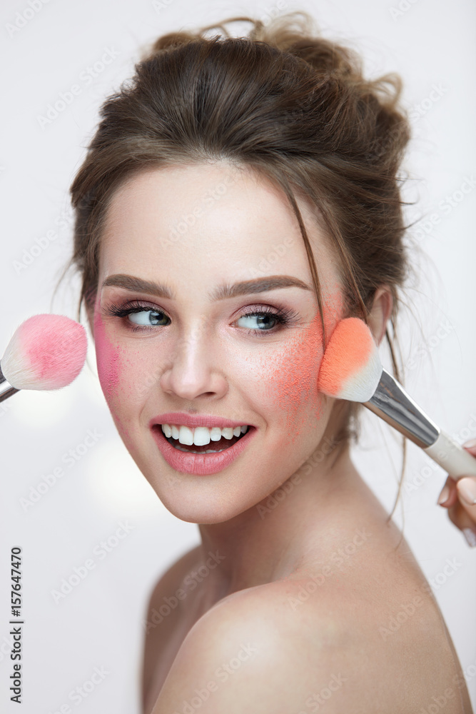 Samolepka Woman Skin Beauty. Happy Female Getting Blush On Beauty Face
