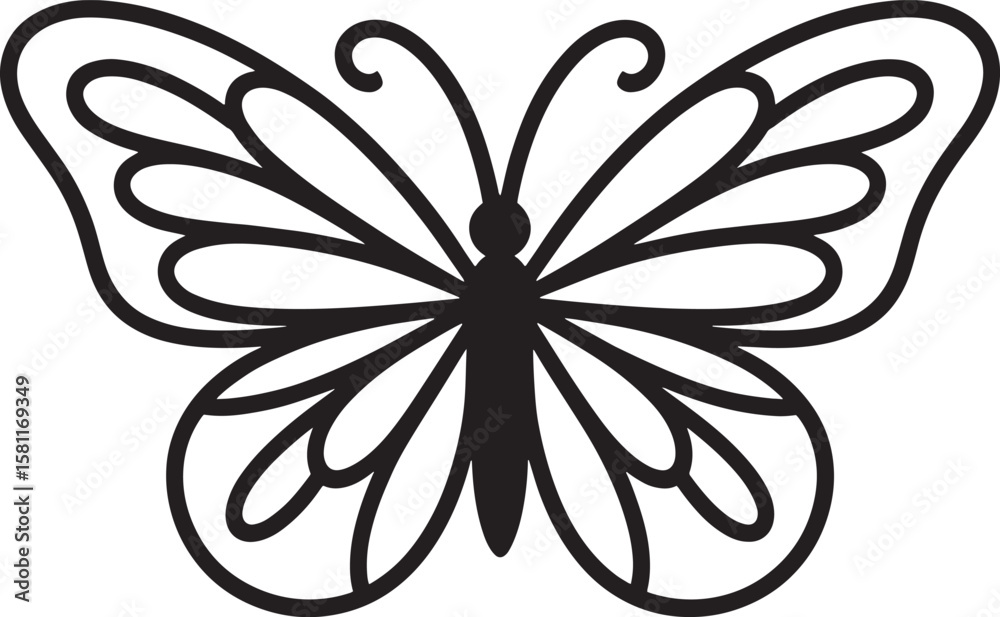 Samolepka Intricate black butterfly outline with symmetrical wings insect white