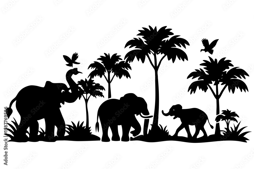 Samolepka Vector art of silhouette of elephants