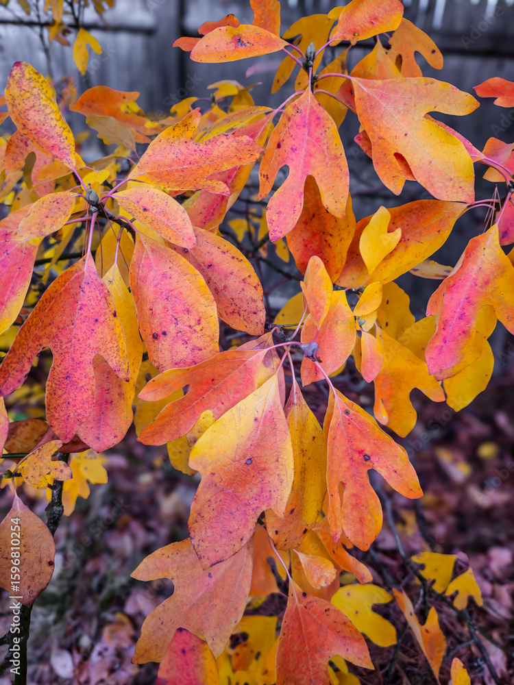 Samolepka colorful autumn sassafras leaves