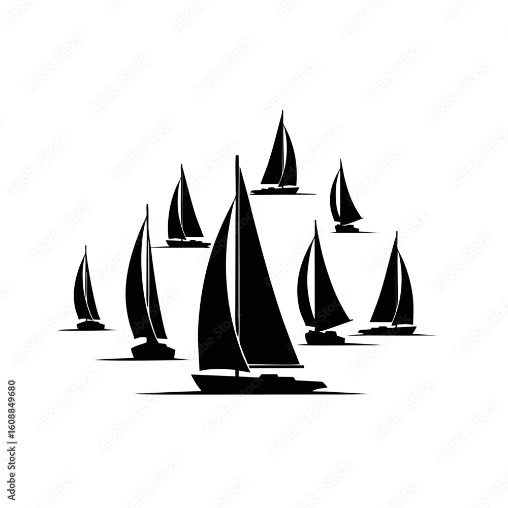 Samolepka Sailboat Race Logo, Simple Black Silhouette of Sailboats in a Regatta Formation