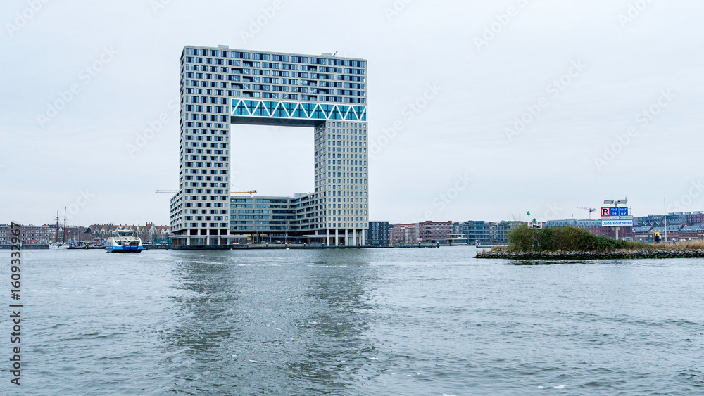 Samolepka Iconic architecture along river IJ, Amsterdam, Netherlands