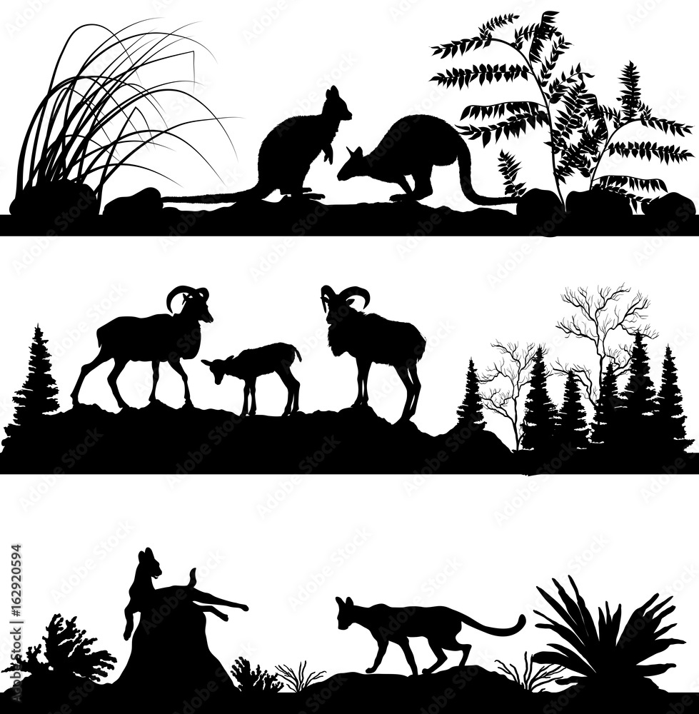 Samolepka wild animals Kangaroos, sheep, wild cats