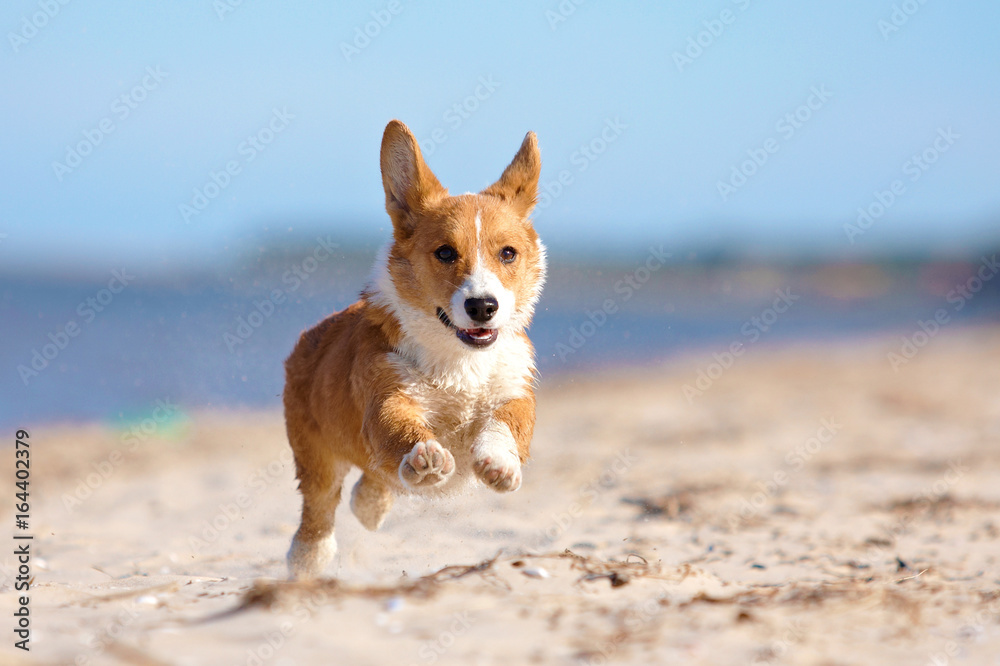 Samolepka Running welsh corgi pembroke and cardigan sea, forest
