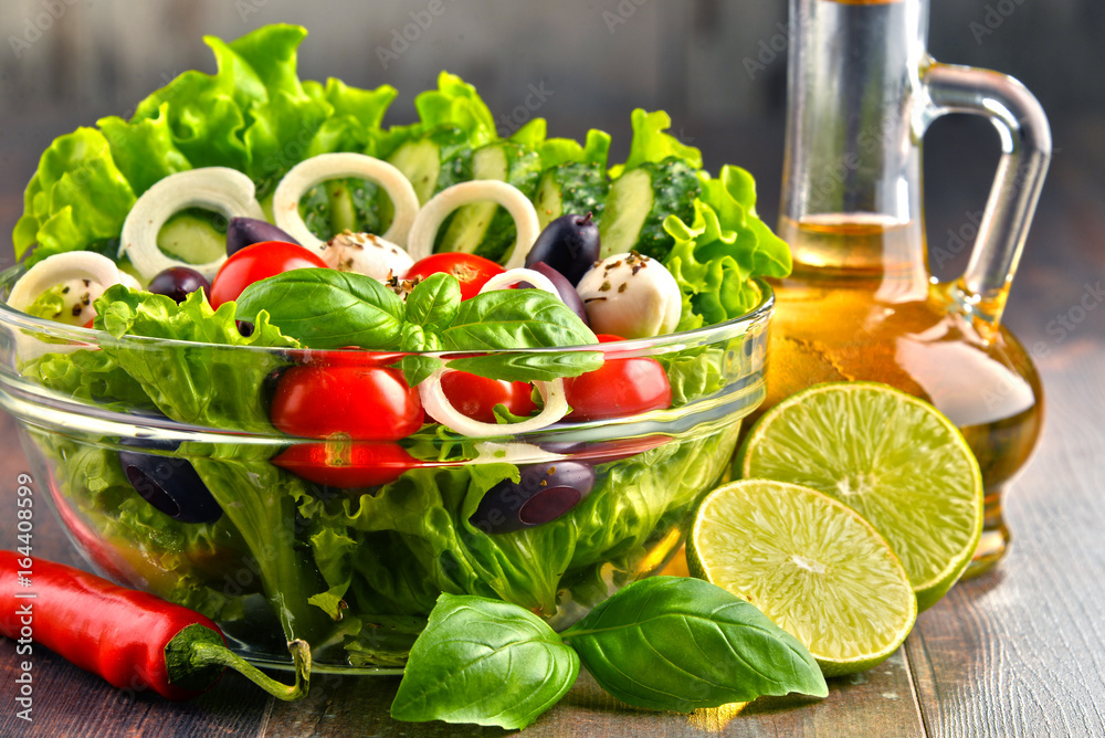Samolepka Composition with vegetable salad bowl. Balanced diet