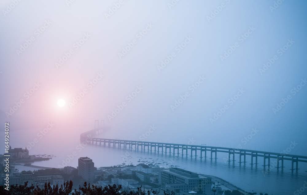Samolepka bay bridge in the morning fog