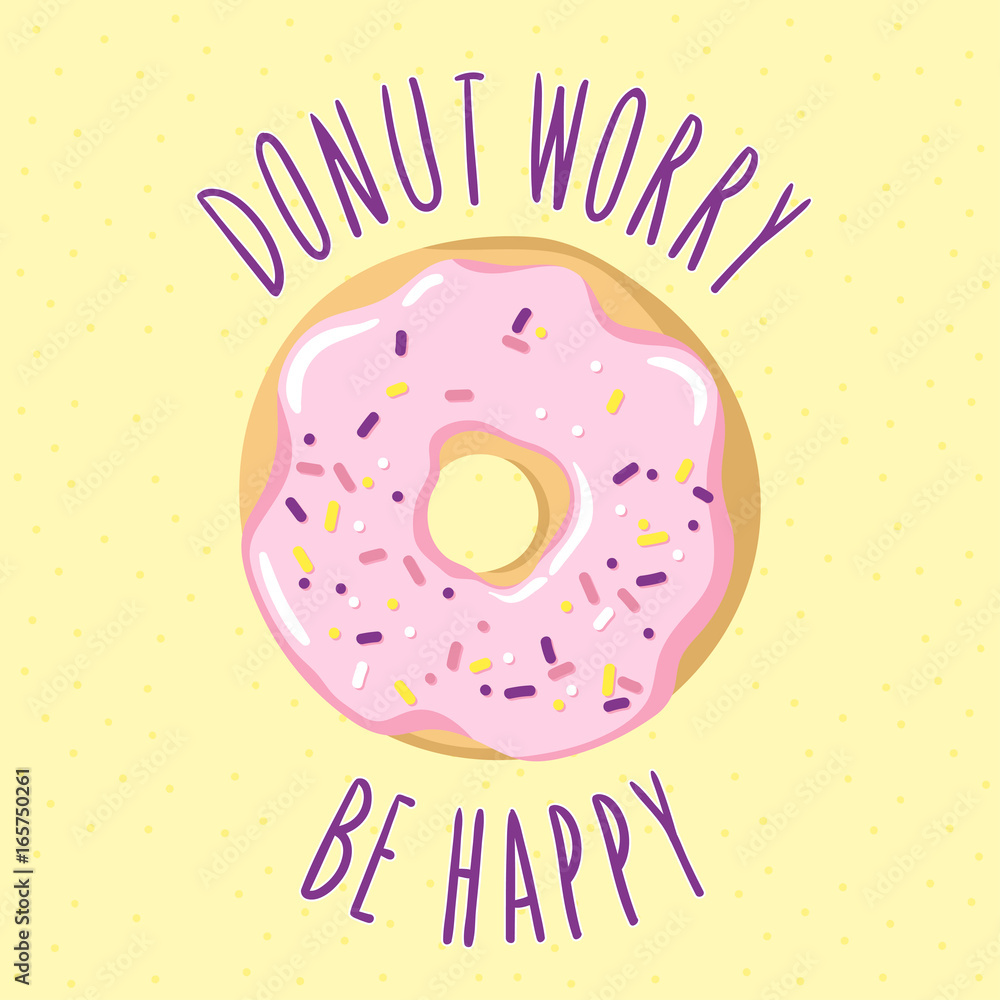 Samolepka Glazed donut with an inscription-pun Donut worry be happy