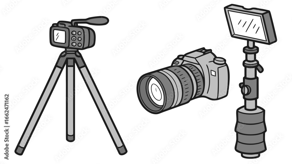 Samolepka A professional video camera on a tripod a dslr camera with a large lens and a re