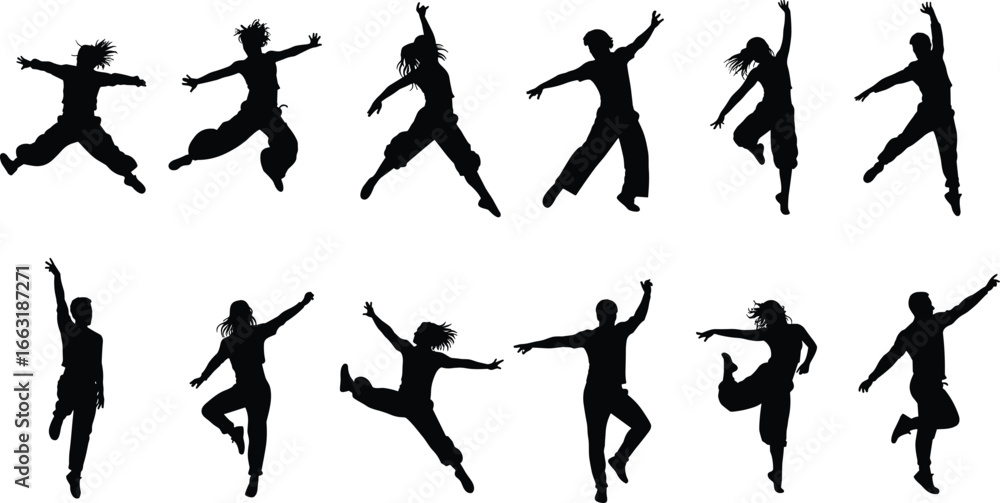 Samolepka Silhouettes of dancers in various elegant dance poses, ballet movements, artisti