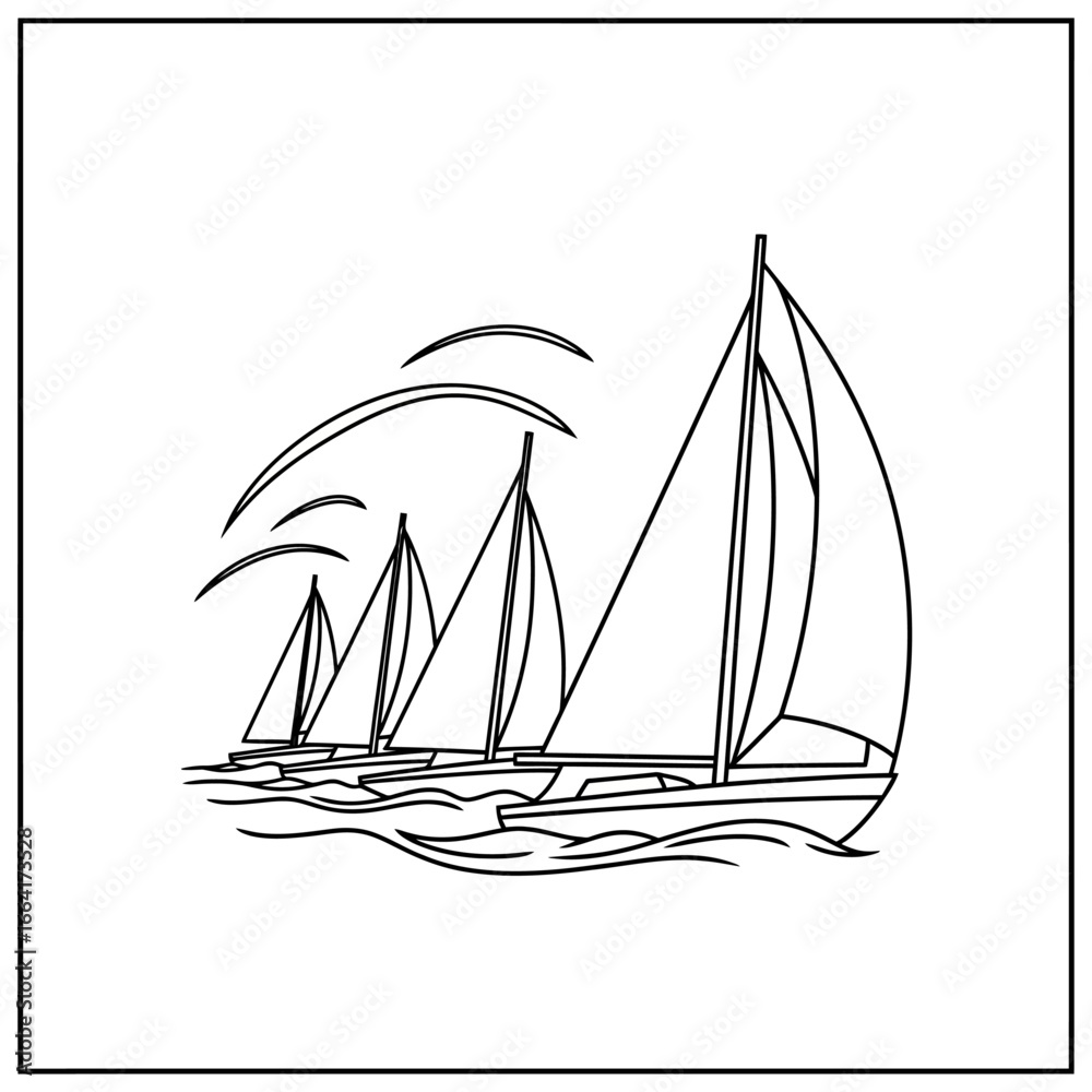 Samolepka sailboats regatta several sailing boats gliding over the ocean waves showcasing a competitive race on a sunny day ideal for travel and nautical themes