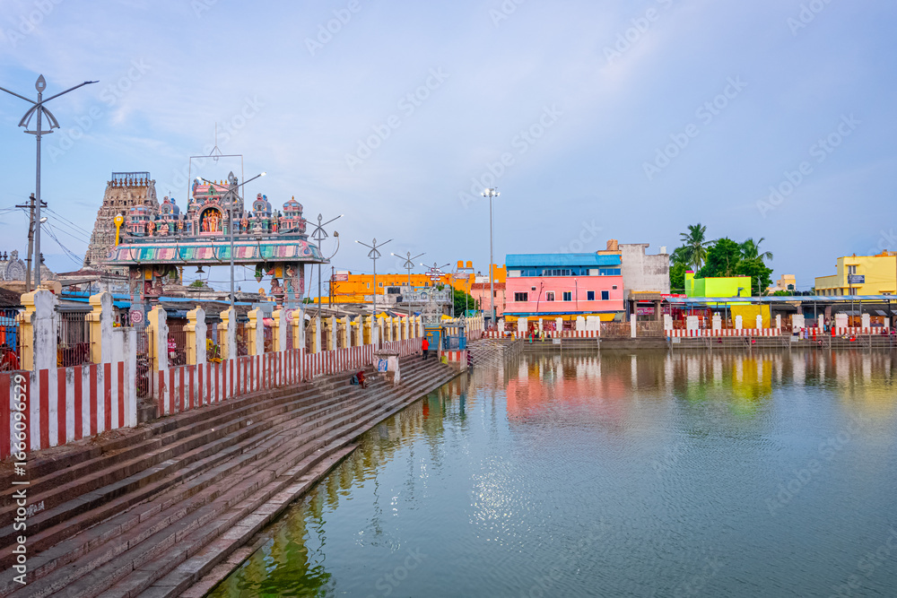 Samolepka Thiruporur Kandaswamy temple Pond in Thiruporur, Chengalpattu district in the South Indian state of Tamil Nadu, is dedicated to the Hindu god Murugan