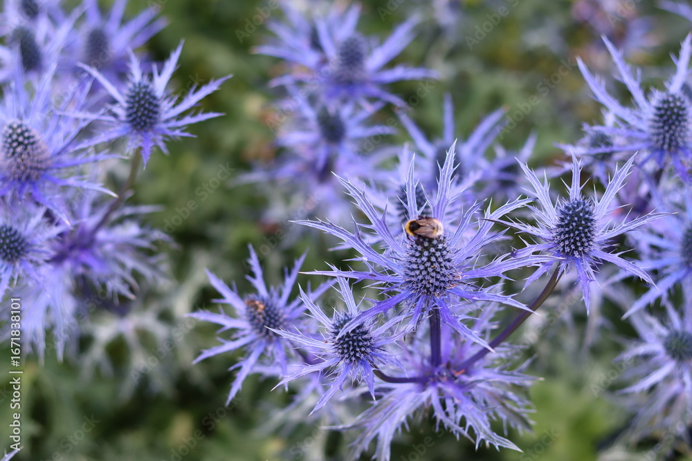 Samolepka Close up of blue thistles or eryngium in a garden in summer