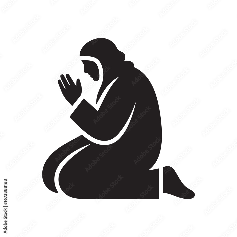 Samolepka A black vector logo of a Muslim person kneeling in prayer.