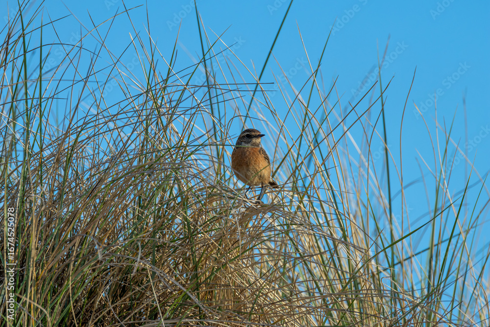 Samolepka Female European Stonechat (Saxicola rubicola), common in coastal scrub and heath