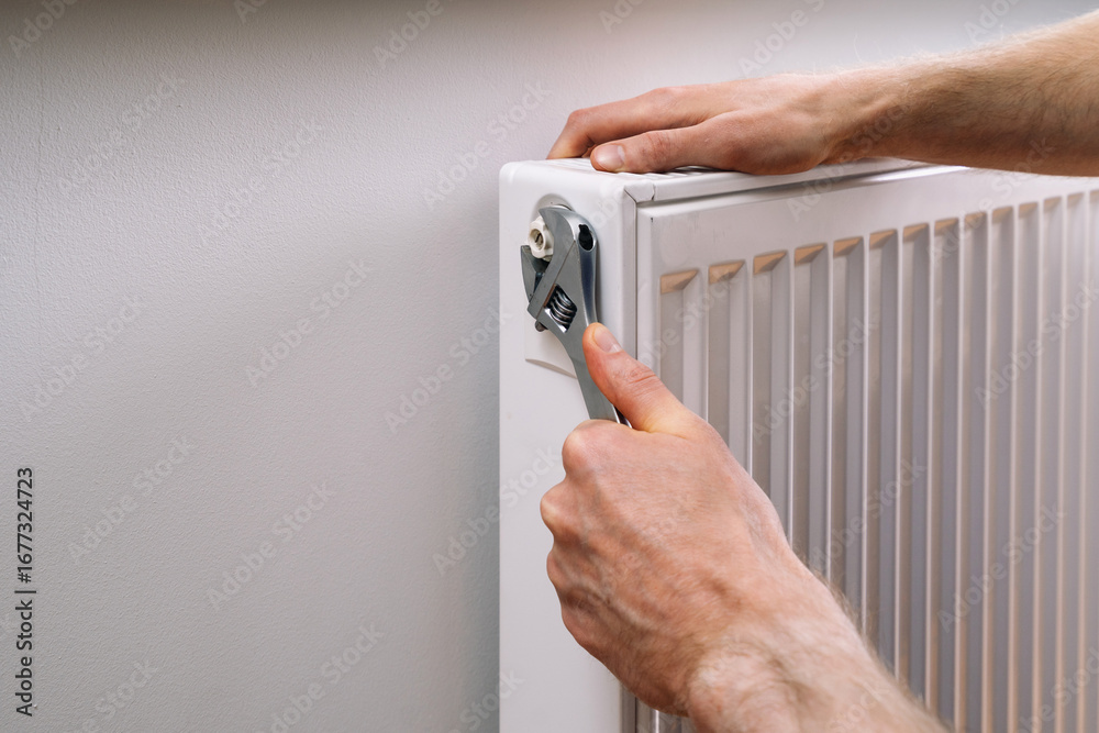 Samolepka Man servicing a radiator to ensure home heating system works efficiently