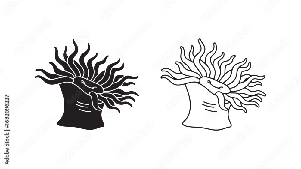 Samolepka Sea anemone outline and silhouette with transparent background