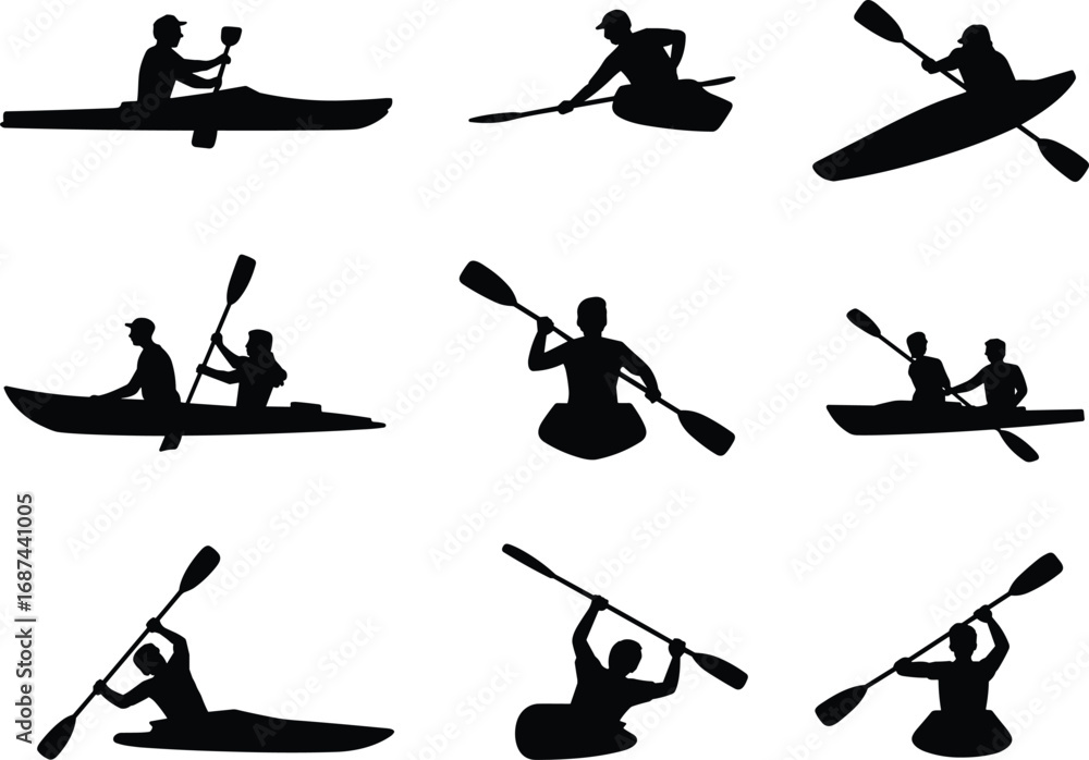 Samolepka Kayaking silhouette vector collection, people paddling canoe illustration, outdo