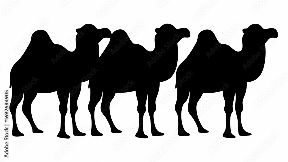 Samolepka Three camels standing in a row in silhouette against a white background in a sim