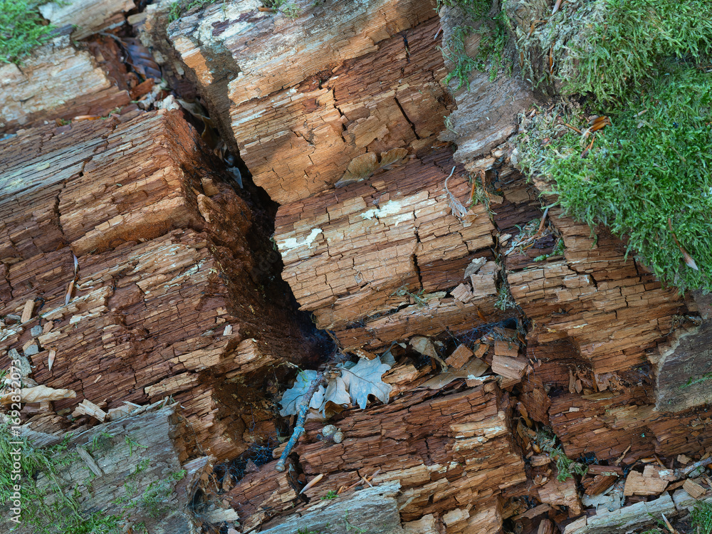 Samolepka Morbides Holz im Forst am Waldboden, Zersetzung mit feiner Struktur