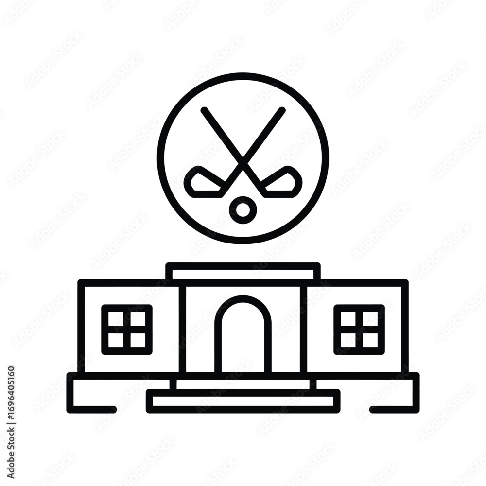 Samolepka Simple line art icon of a golf club building with crossed clubs and ball