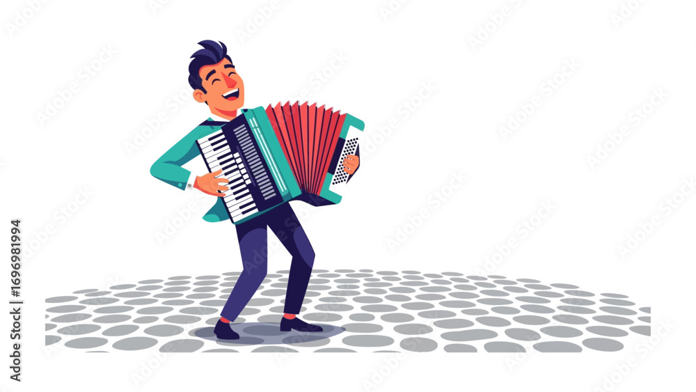 Samolepka Musical Joy: A smiling person radiates happiness while passionately playing the accordion, their face expressing sheer bliss