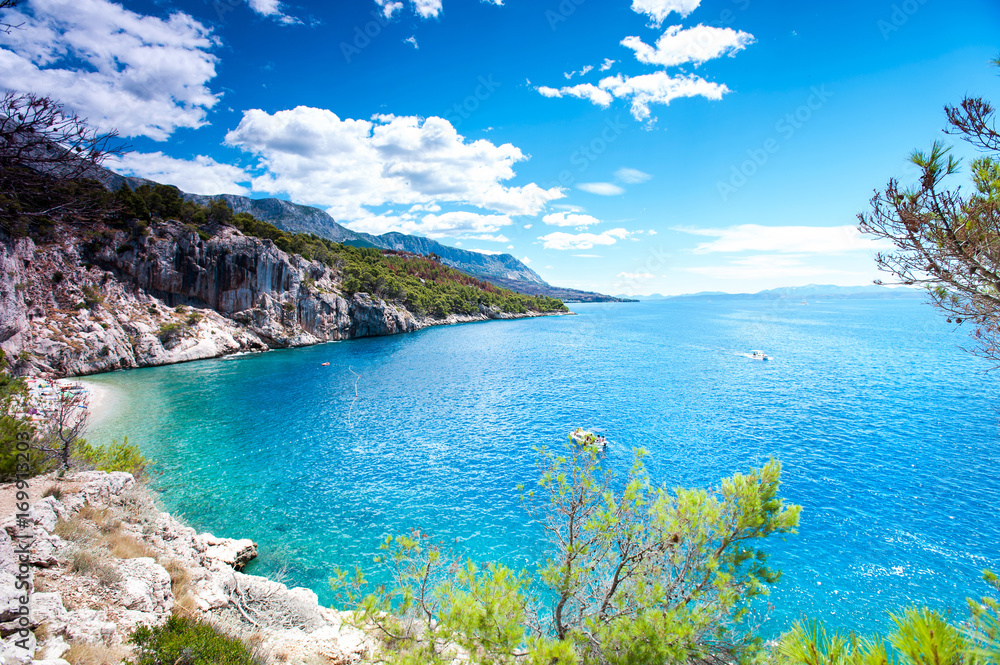 Samolepka View of Adriatic Sea and quiet majestic bay in Dalmatia