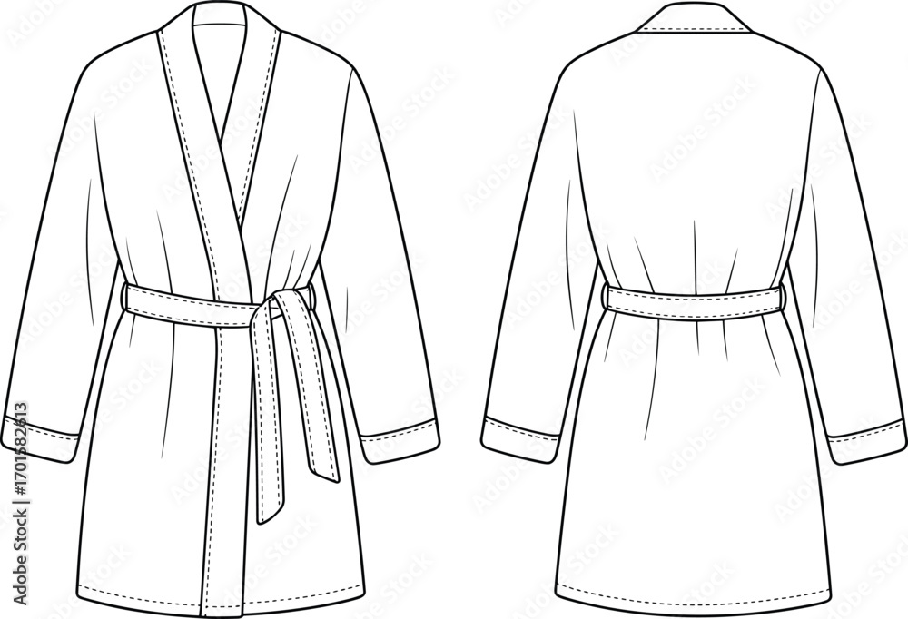 Samolepka Bathrobe fashion sketch, technical garment drawing, flat vector illustration, cl