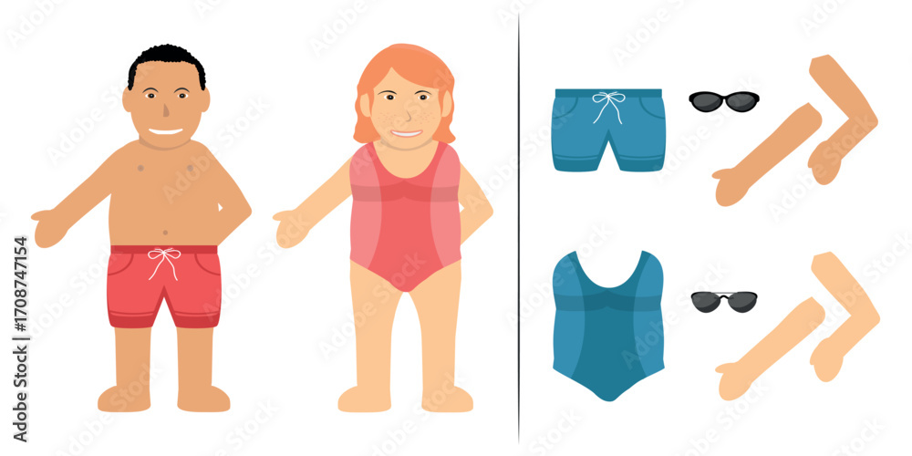 Samolepka Male and Female Swimsuit, Fat Bather Character.