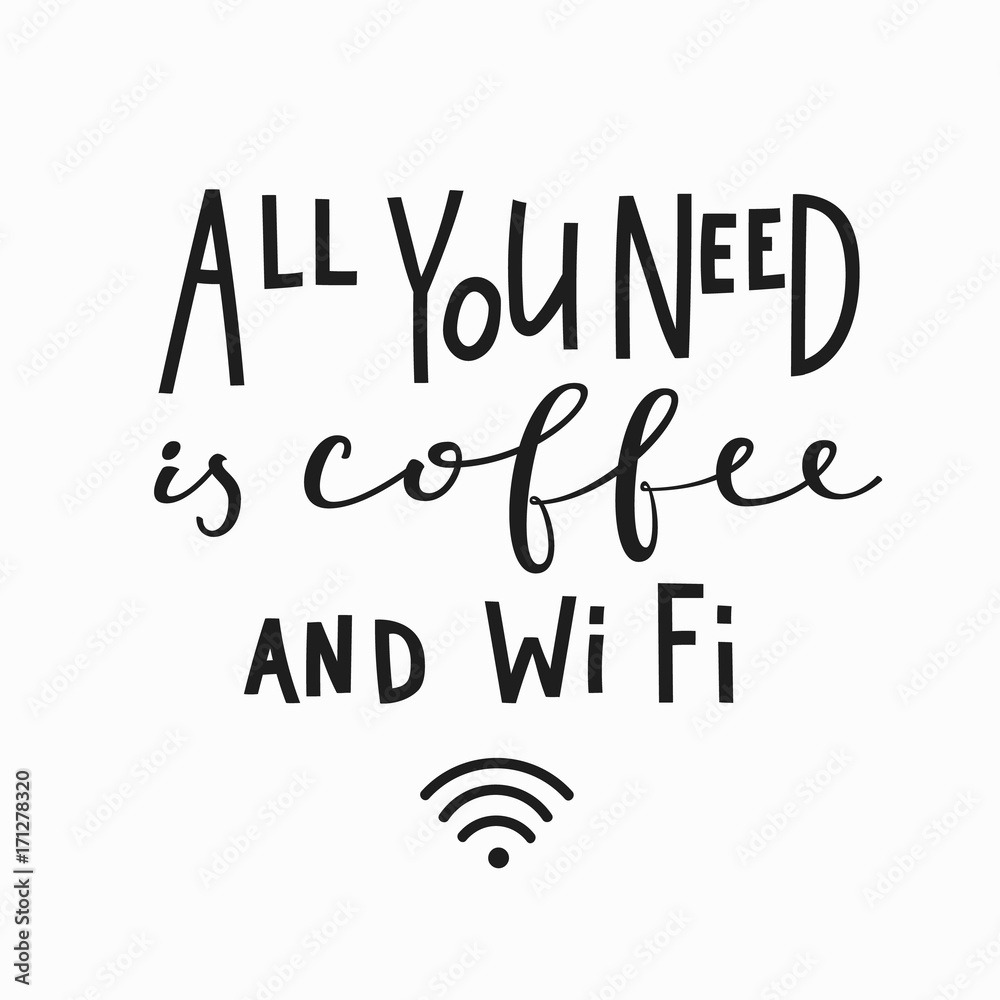Samolepka Need coffee and Wi Fi Quote typography lettering
