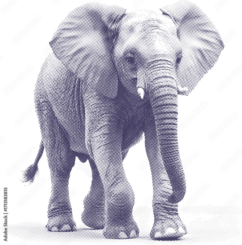 Samolepka Vector halftone dots art of a large african elephant walking forward