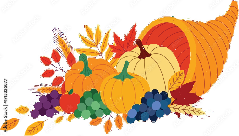 Samolepka Celebrate autumn harvest with this vibrant cornucopia filled with pumpkins, frui