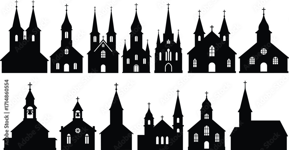 Samolepka Church silhouette collection, black vector icons, religious architecture graphic