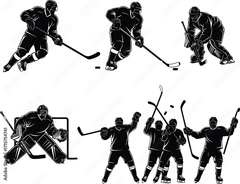 Samolepka Ice hockey players silhouette vector set, team sports action design, hockey stic