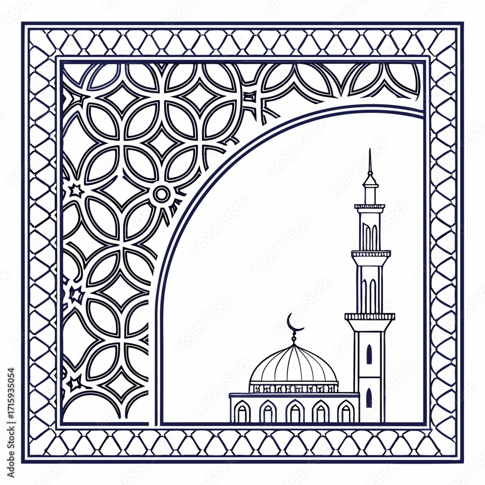 Samolepka Intricate islamic geometric patterns frame a mosque with a dome and minaret in a