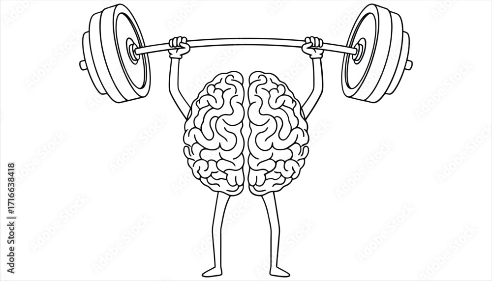 Samolepka Vector art of brain lifting barbell illustration in black and white, representin