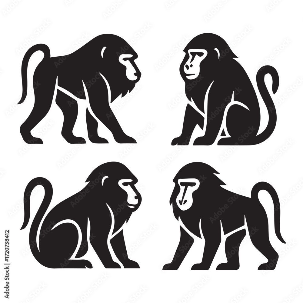 Samolepka A diverse set of black vector silhouettes of wild animals and domestic pets like