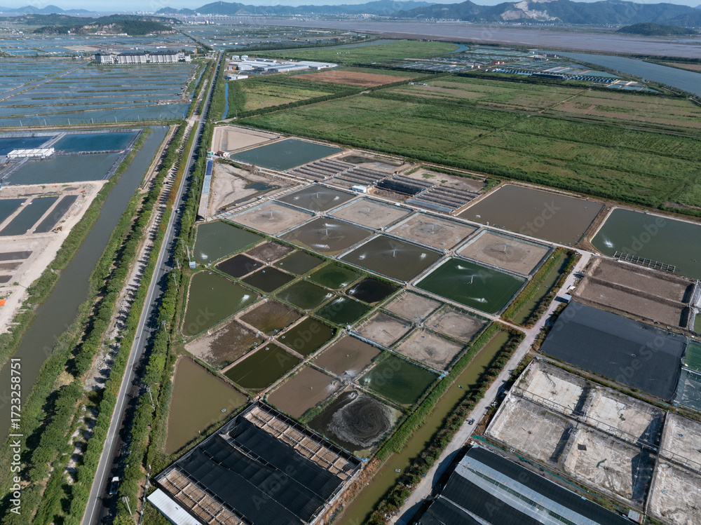 Samolepka Aerial view of aquaculture ponds with diverse water areas