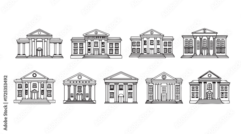 Samolepka Collection of classic architectural building facades architectural styles line a