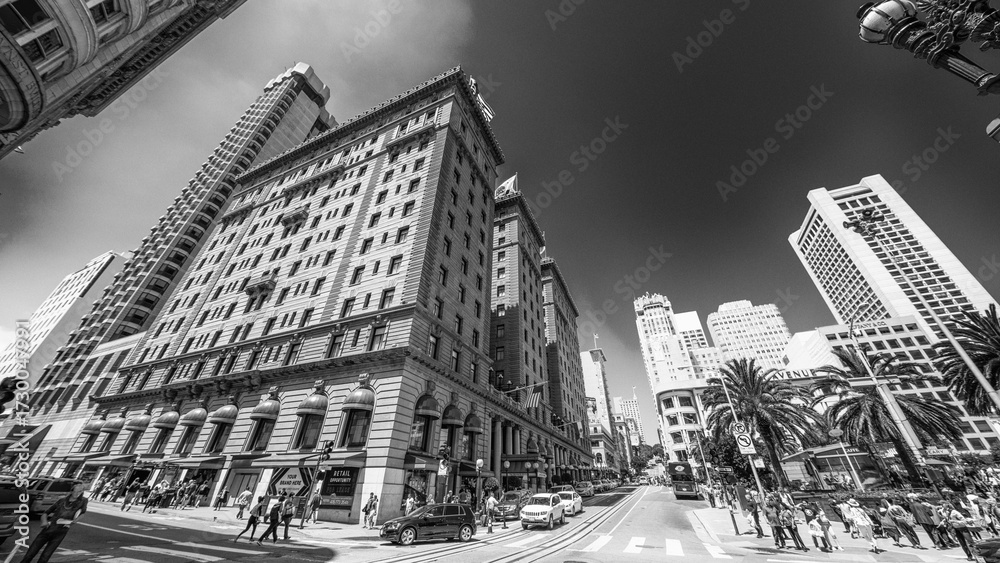 Samolepka San Francisco, CA - August 6, 2017: Union Square and buildings on a sunny day